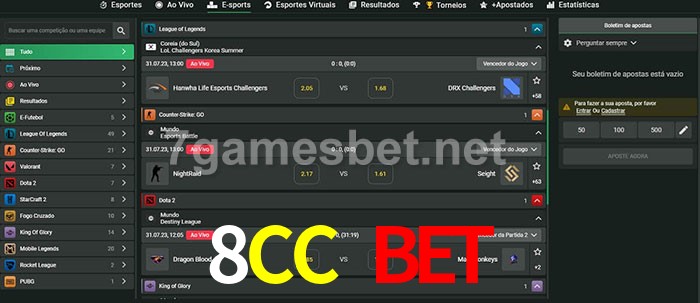 O 8CC Bet oferece uma grande seleção de opções de apostas em e-sports com probabilidades competitivas